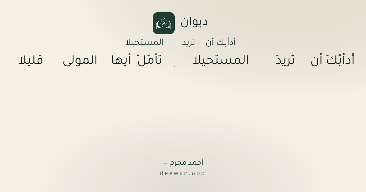 - 1أَدأبُكَ أن تُريدَ المستحيلا◆تأمّلْ أيها المولى قليلا