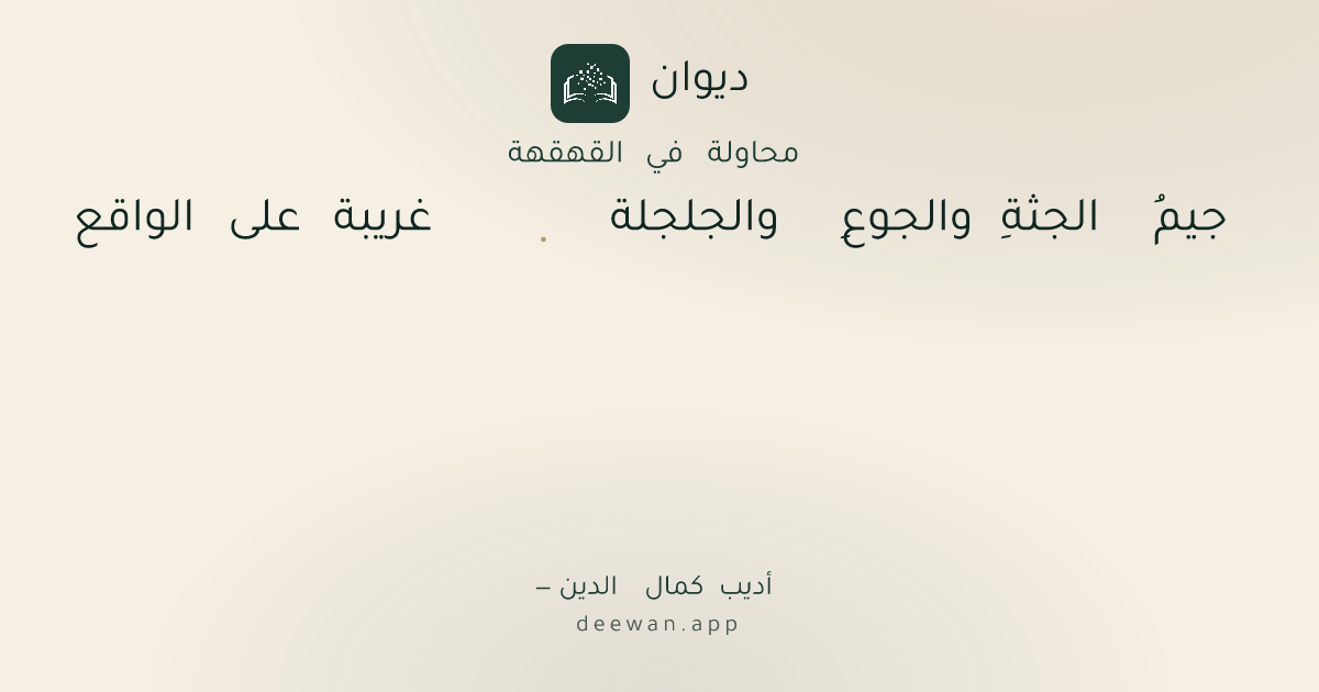 - 1جيمُ الجثةِ والجوعِ والجلجلة◆غريبة على الواقع