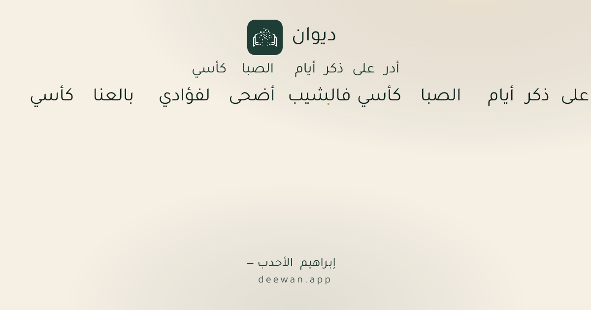 - 1أدر على ذكر أيام الصبا كأسي◆فالشيب أضحى لفؤادي بالعنا كأسي