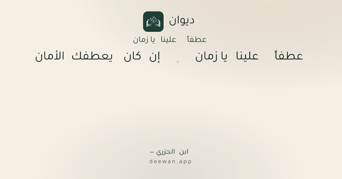 - 1عطفاً علينا يا زمان◆إن كان يعطفك الأمان