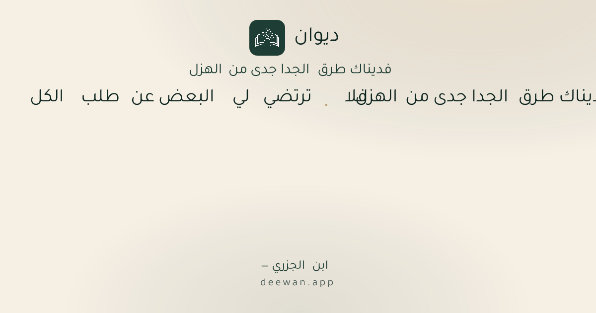 - 1فديناك طرق الجدا جدى من الهزل◆فلا ترتضي لي البعض عن طلب الكل