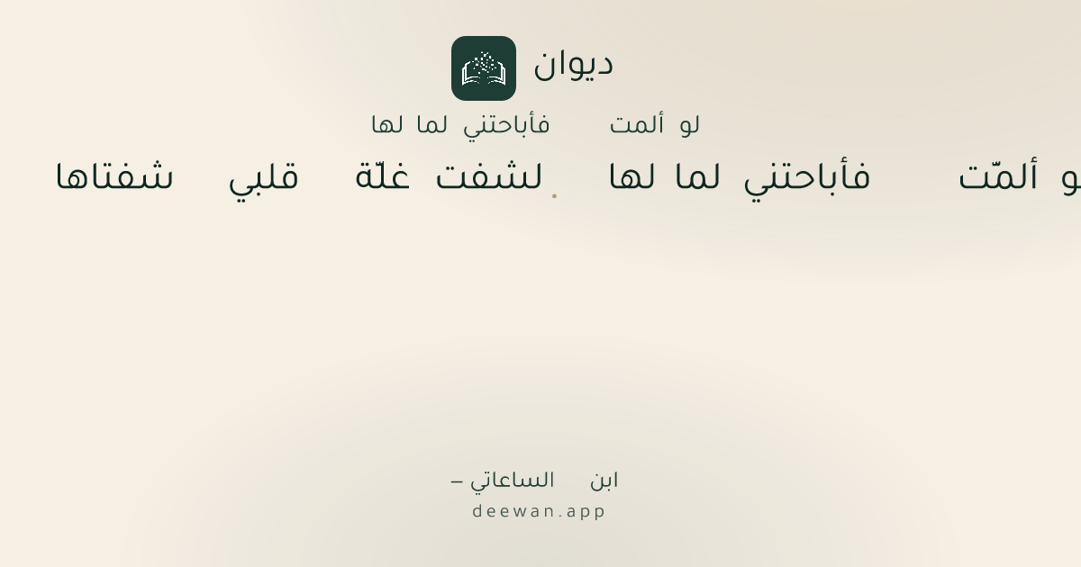 - 1لو ألمَّت فأباحتني لما لها◆لشفت غلَّة قلبي شفتاها