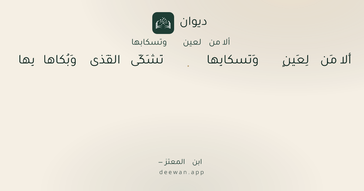 - 1أَلا مَن لِعَينٍ وَتَسكابِها◆تَشَكّى القَذى وَبُكاها بِها