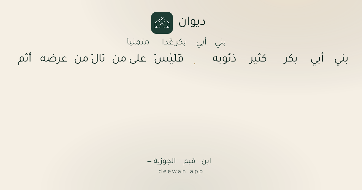 - 7بني أبي بكر لقد خَابَ سَعْيه◆إِذا لم يكن فِي الصَّالِحَات لَهُ سهم