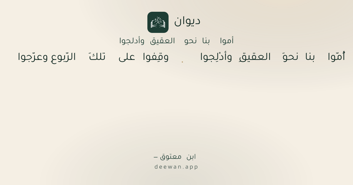- 1أُمّوا بنا نحوَ العقيقِ وأدْلِجوا◆وقِفوا على تلكَ الرّبوعِ وعرّجوا