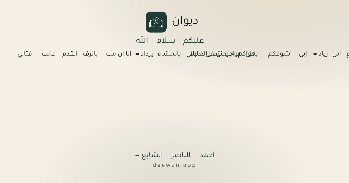 - 1عليكم سلام الله ياهل شارع ابن زياد = ابي شوفكم ياللي هواكم شغل بالي◆هواكم جرحني والغلاء بالحشاء يزداد = انا ان مت ياترف القدم فانت قتالي
