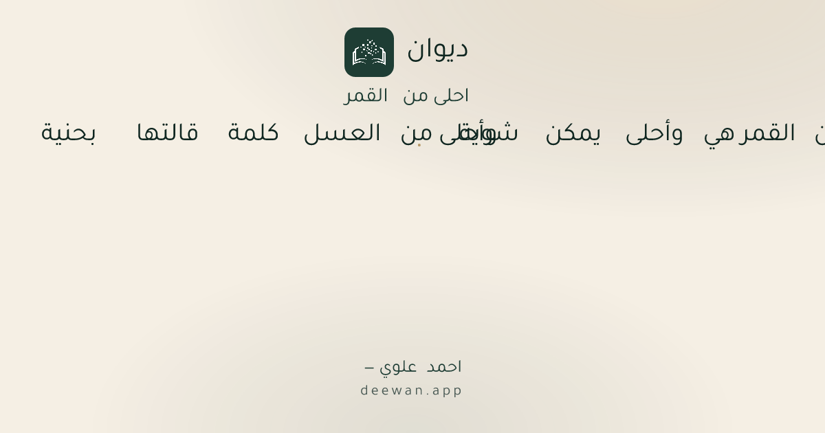 - 1أحلى من القمر هي وأحلى يمكن شوية◆وأحلى من العسل كلمة قالتها بحنية