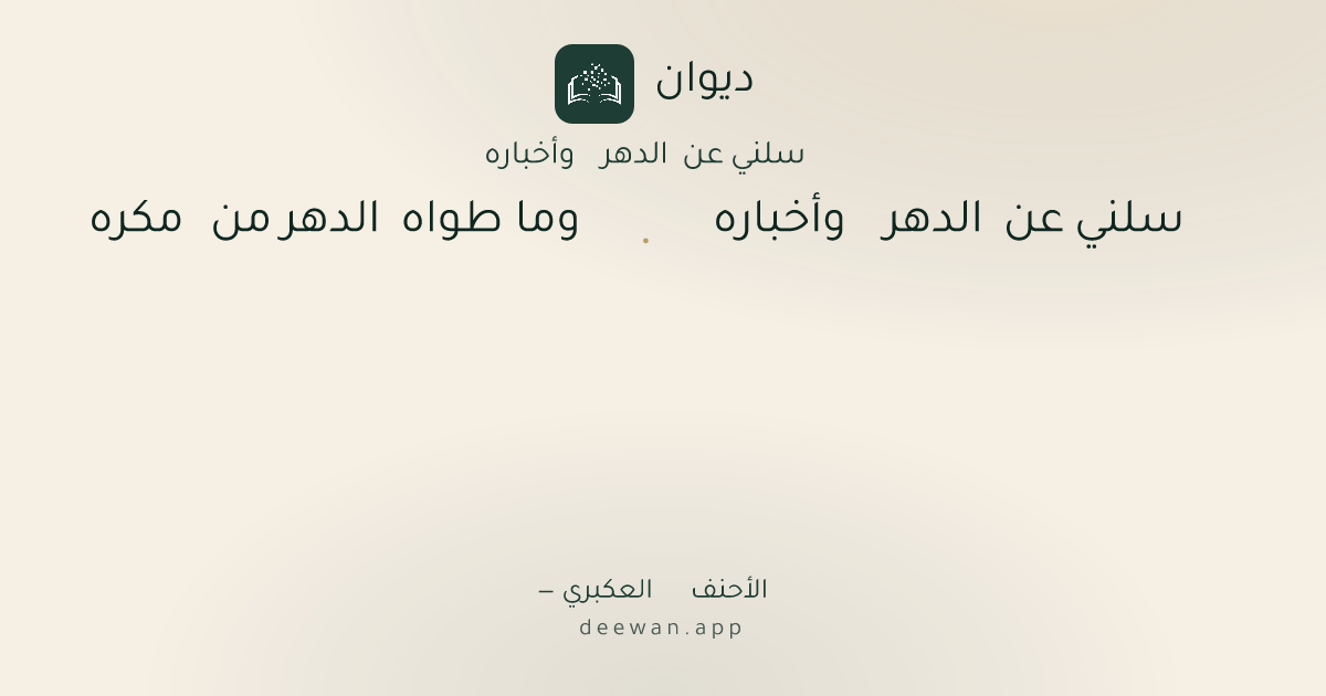 - 1سلني عن الدهر وأخباره◆وما طواه الدهر من مكره