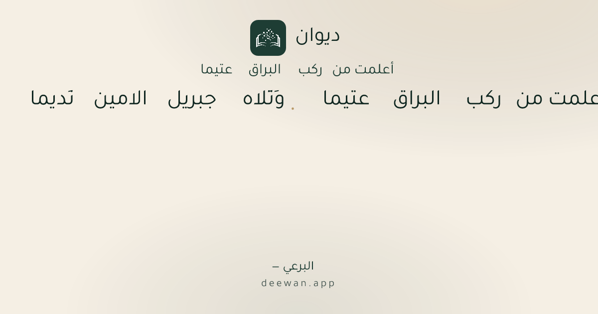 - 1أَعلمت من ركب البراق عتيما◆وَتَلاه جبريل الامين نَديما