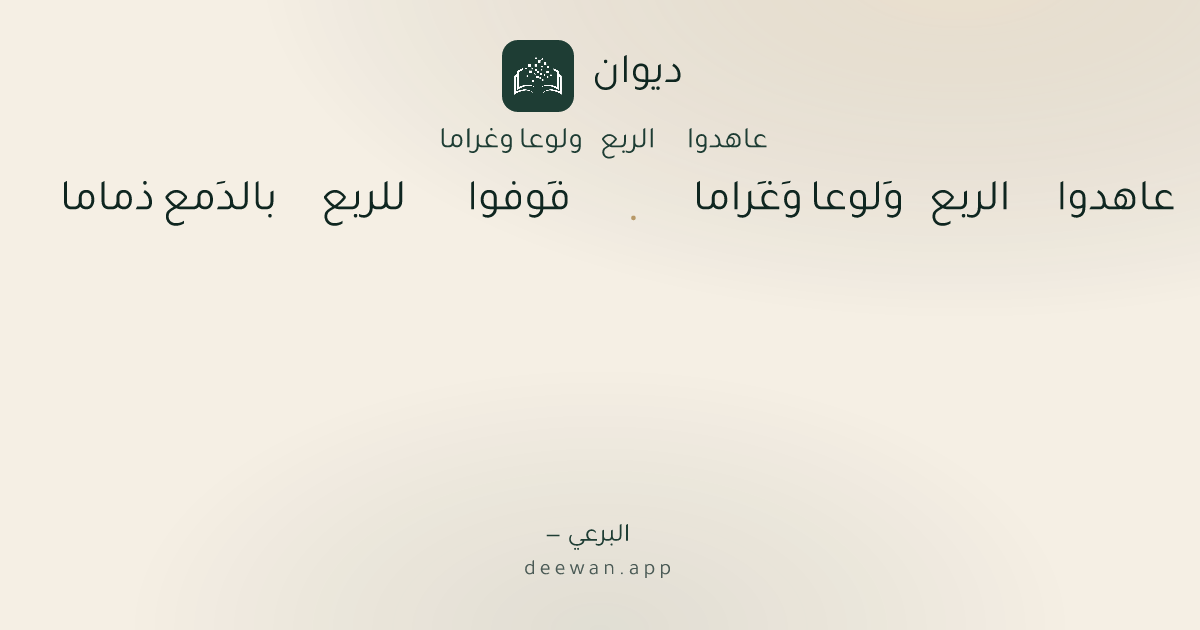 - 1عاهدوا الربع وَلوعا وَغَراما◆فَوفوا للربع بالدَمع ذماما