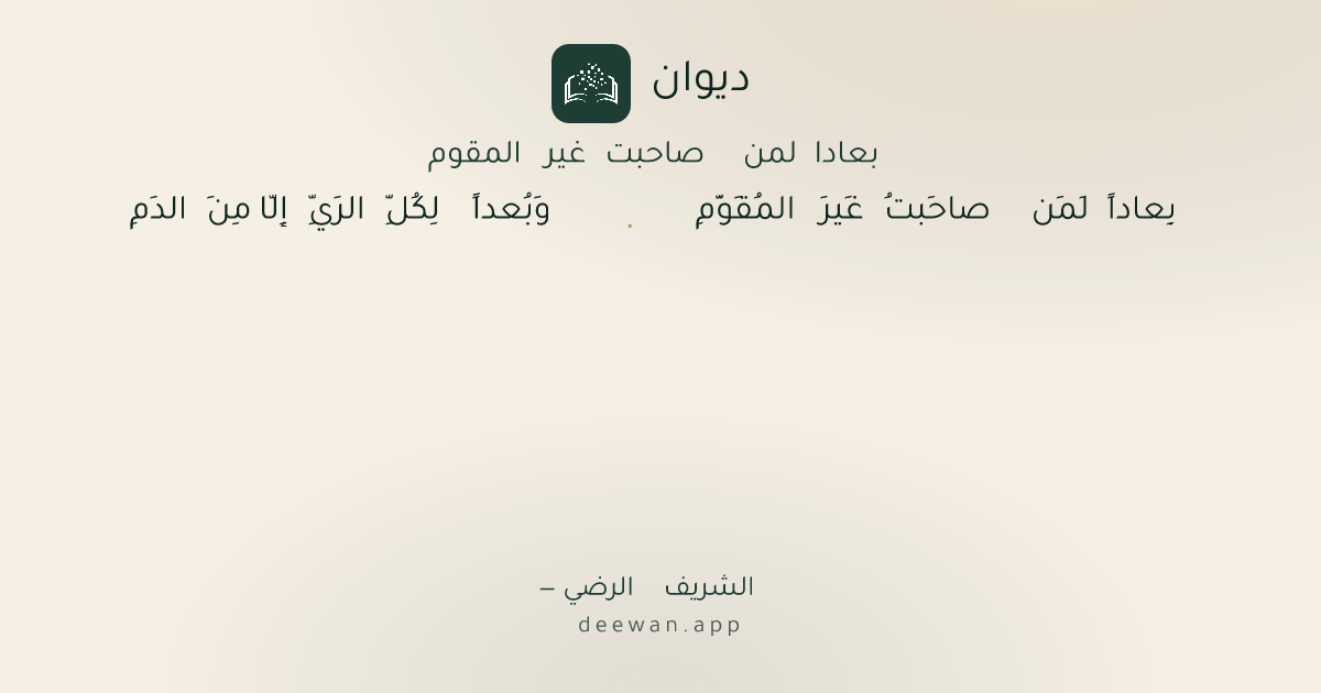 - 1بِعاداً لَمَن صاحَبتُ غَيرَ المُقَوَّمِ◆وَبُعداً لِكُلِّ الرَيِّ إِلّا مِنَ الدَمِ