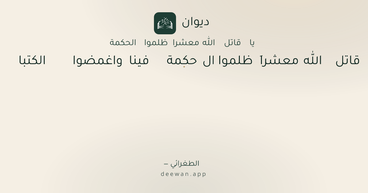 - 1يا قاتل الله معشراَ ظلموا ال◆حكمة فينا واغمضوا الكتبا