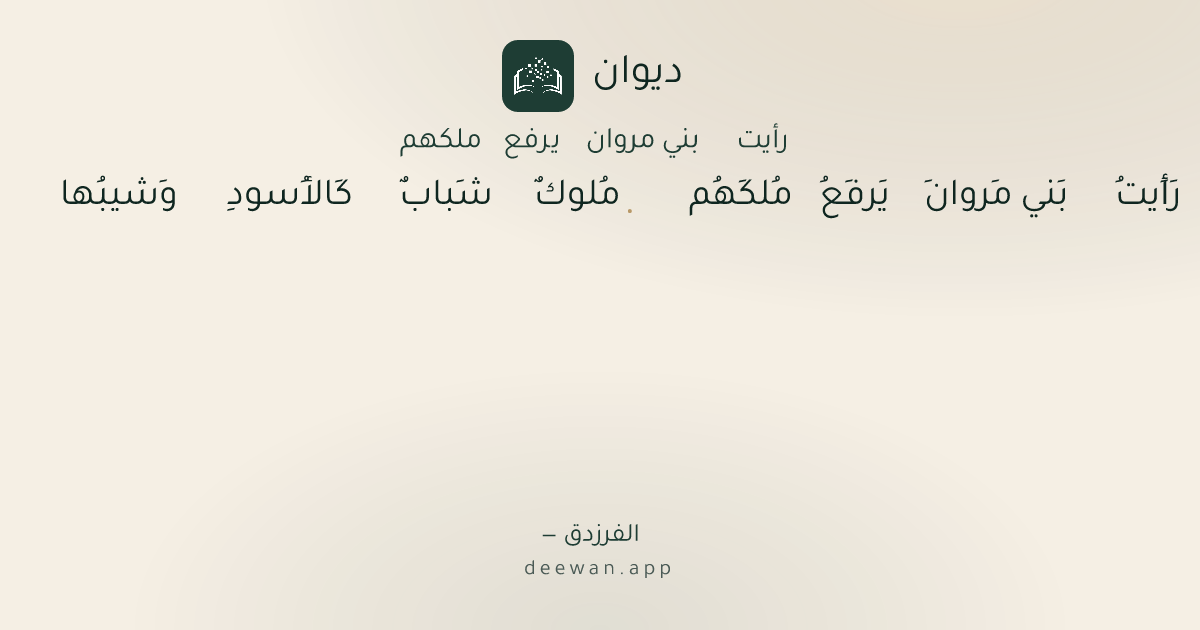 - 1رَأَيتُ بَني مَروانَ يَرفَعُ مُلكَهُم◆مُلوكٌ شَبابٌ كَالأُسودِ وَشيبُها