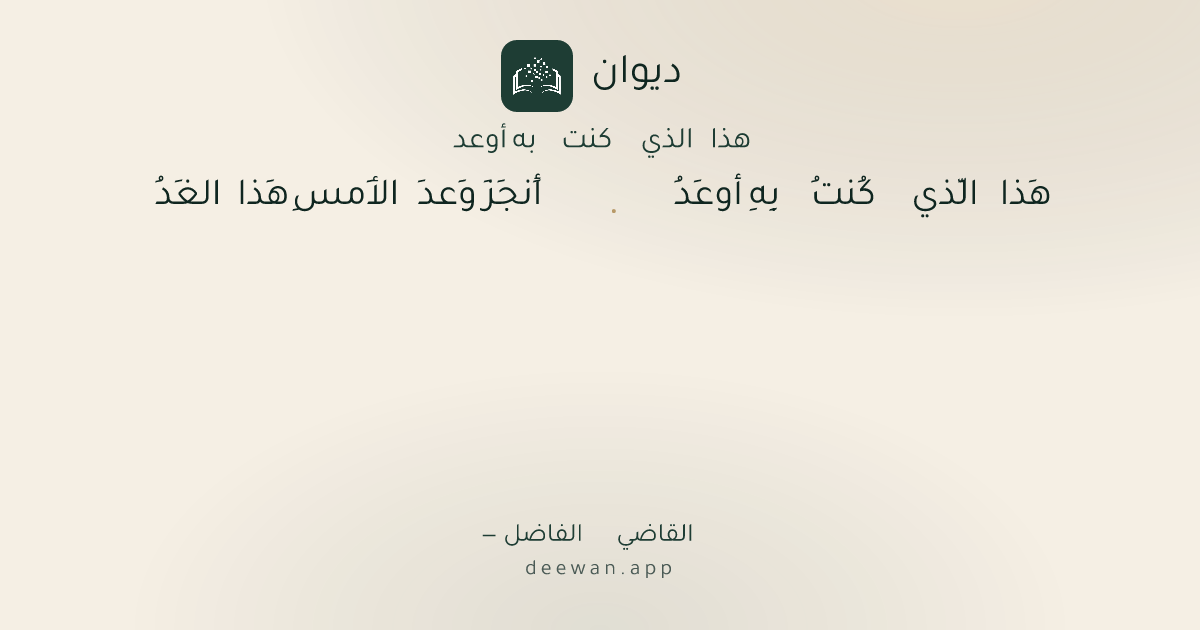 - 1هَذا الَّذي كُنتُ بِهِ أوعَدُ◆أَنجَزَ وَعدَ الأَمسِ هَذا الغَدُ