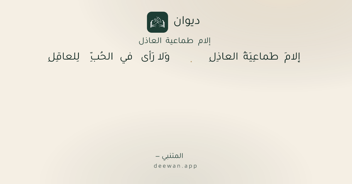 - 1إِلامَ طَماعِيَةُ العاذِلِ◆وَلا رَأى في الحُبِّ لِلعاقِلِ