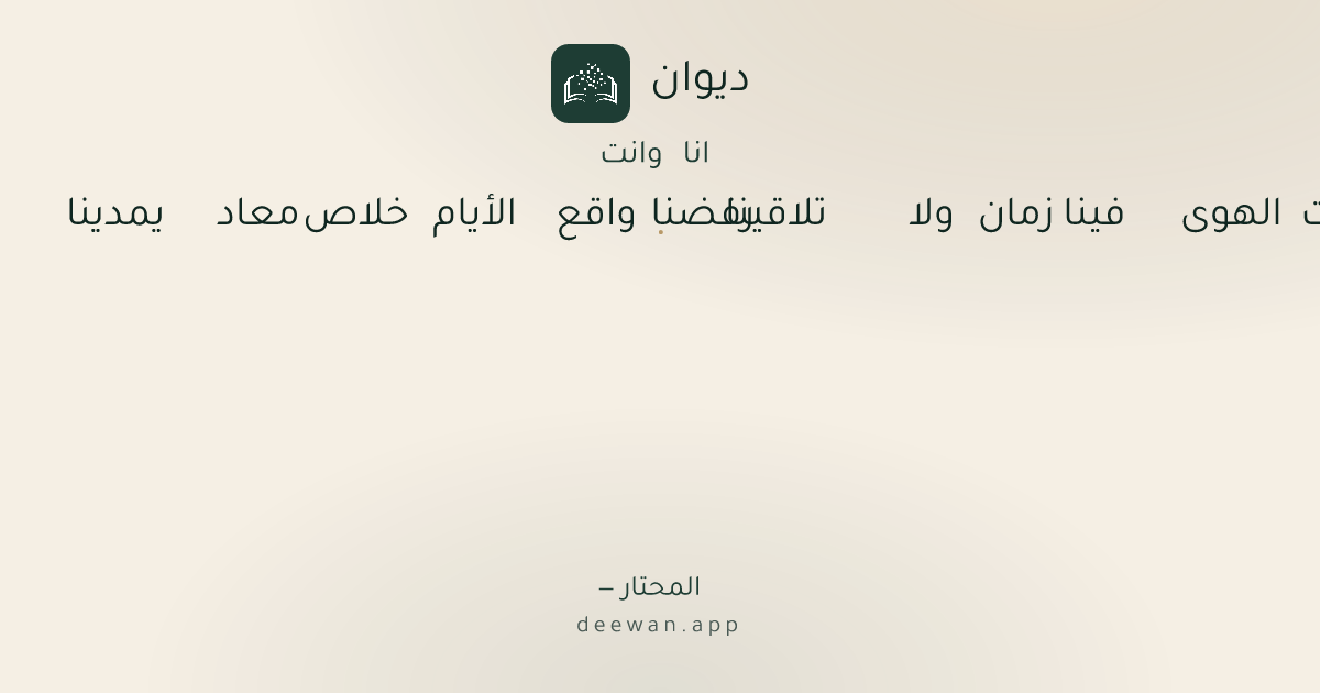 - 1أنا وانت الهوى فينا زمان ولا تلاقينا◆رفضنا واقع الأيام خلاص معاد يمدينا