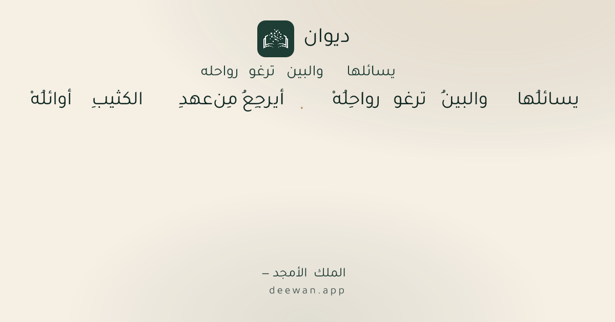 - 1يسائلُها والبينُ ترغو رواحِلُهْ◆أيرجِعُ مِن عهدِ الكثيبِ أوائلُهْ