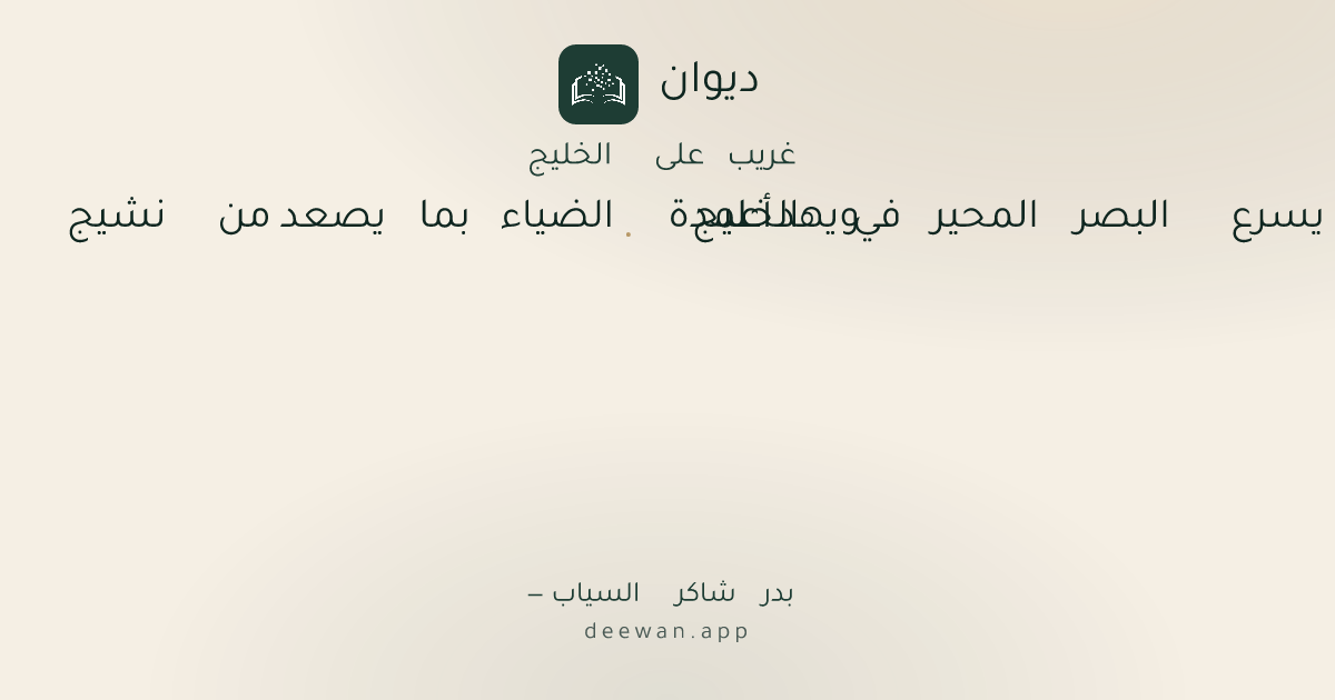 - 1جلس الغريب يسرع البصر المحير في الخليج◆ويهد أعمدة الضياء بما يصعد من نشيج