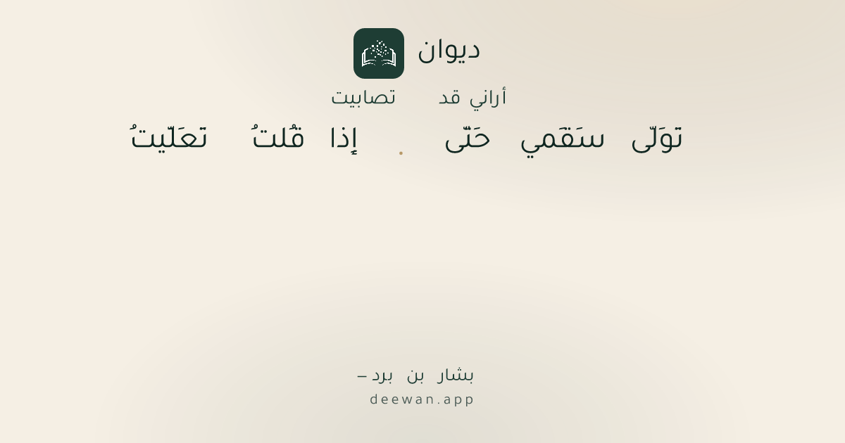 - 1تَوَلّى سَقَمي حَتّى◆إِذا قُلتُ تَعَلَّيتُ