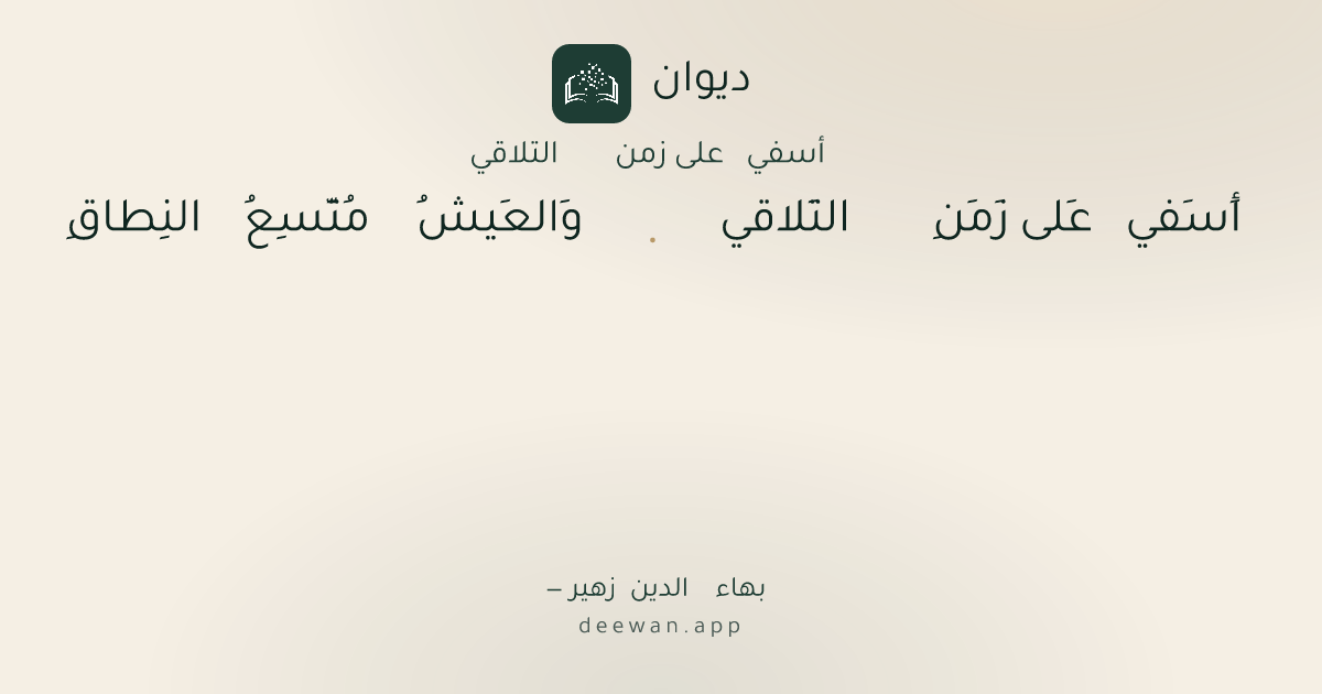 - 1أَسَفي عَلى زَمَنِ التَلاقي◆وَالعَيشُ مُتَّسِعُ النِطاقِ