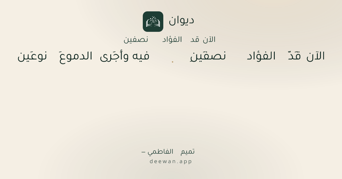 - 1الآن قَدَّ الفؤاد نصفَينِ◆فيه وأَجَرى الدموعَ نوعَين