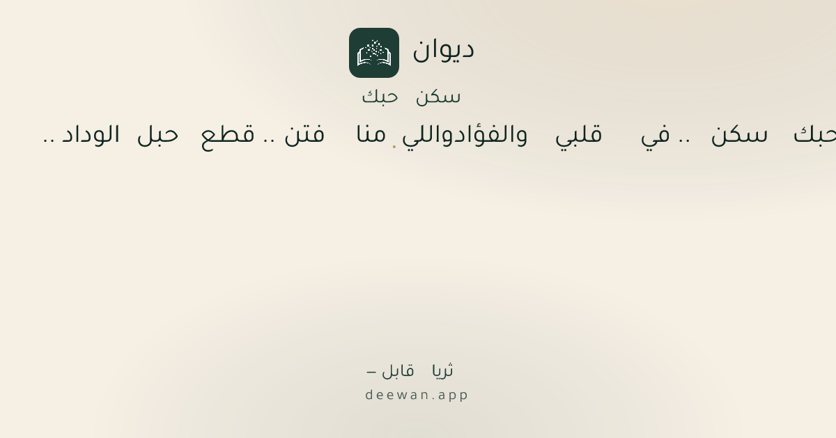 - 1سكن حبك سكن .. في قلبي والفؤاد ..◆واللي منا فتن .. قطع حبل الوداد ..