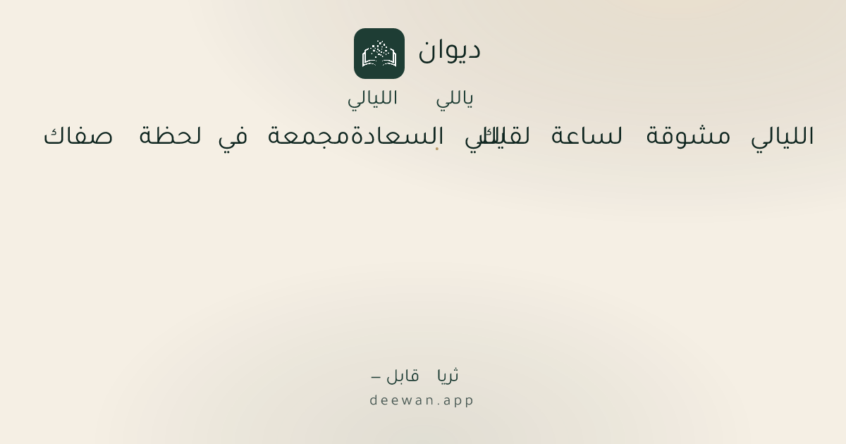 - 1يللي الليالي مشوقة لساعة لقاك◆يللي السعادة مجمعة في لحظة صفاك