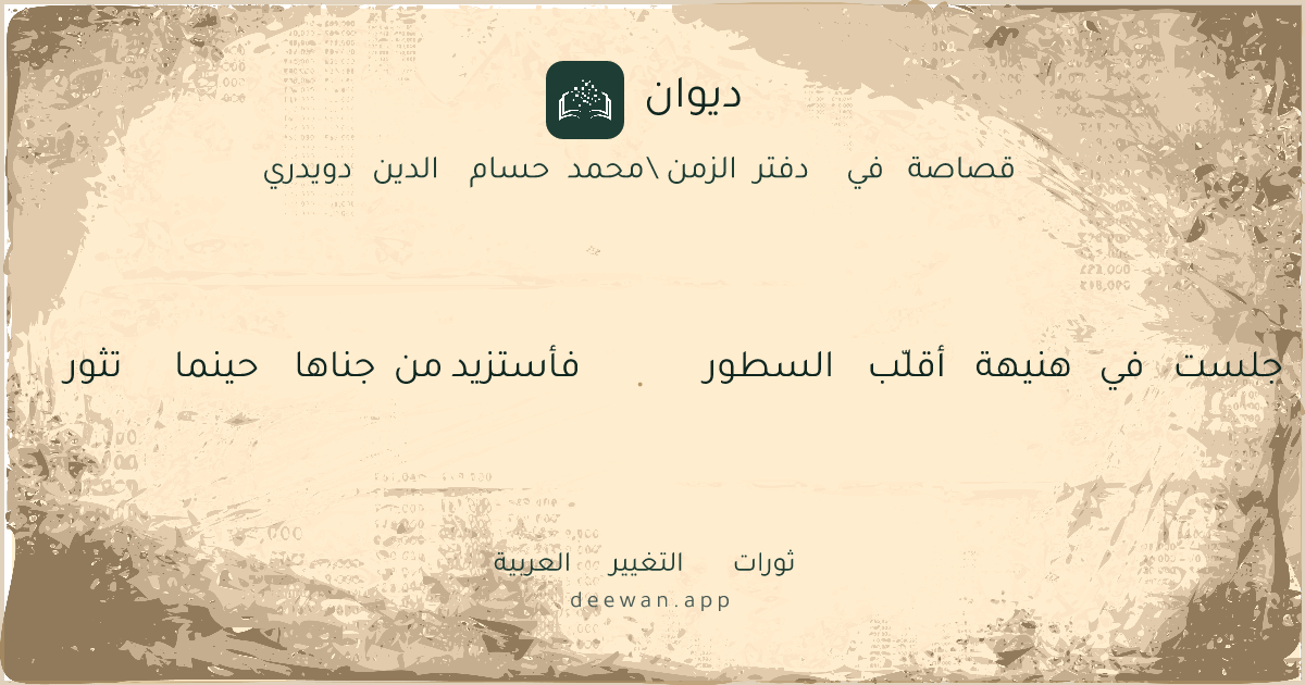 - 1جلست في هنيهة أقلّب السطور◆فأستزيد من جناها حينما تثور