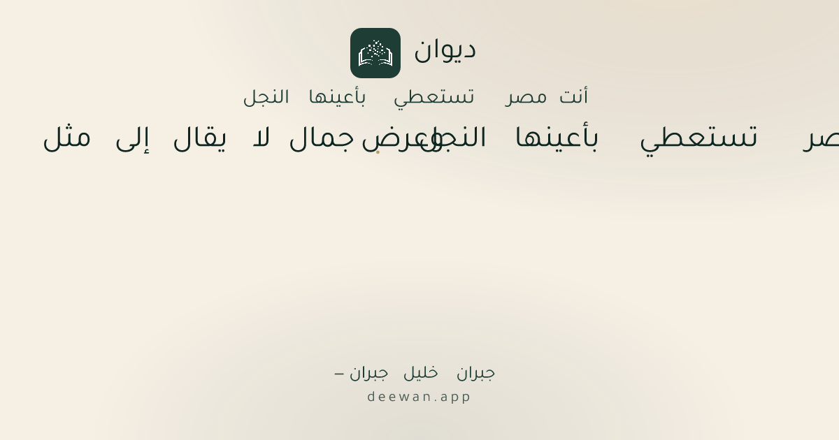 - 1أنت مصر تستعطي بأعينها النجل◆وعرض جمال لا يقال إلى مثل