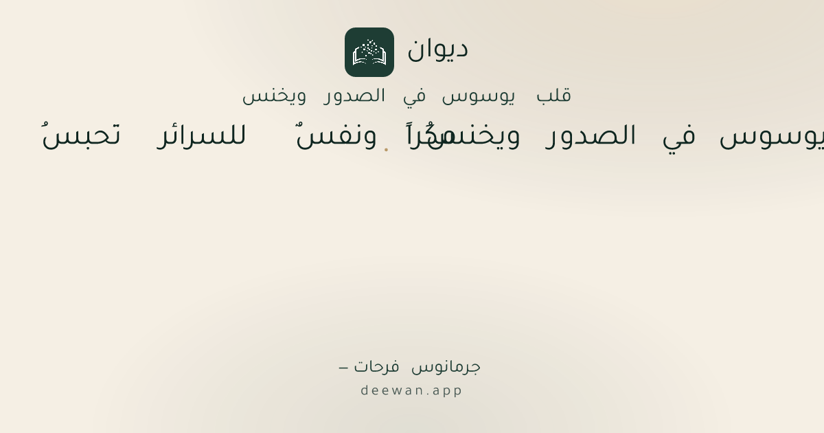 - 1قلبٌ يوسوس في الصدور ويخنسُ◆مكراً ونفسٌ للسرائر تَحبسُ