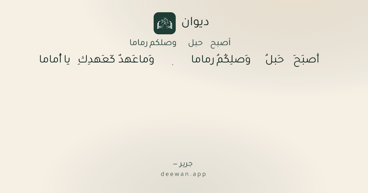 - 1أَصبَحَ حَبلُ وَصلِكُمُ رِماما◆وَما عَهدٌ كَعَهدِكِ يا أُماما