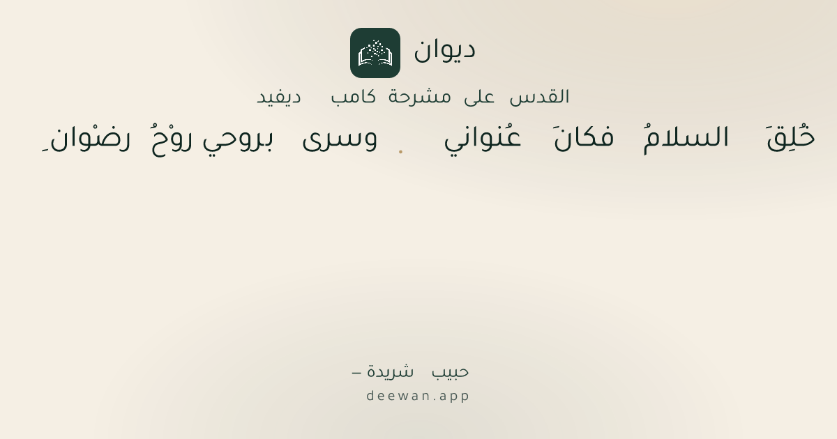 - 1خُلِقَ السلامُ فكانَ عُنواني◆وسرى بروحي روْحُ رضْوان ِ