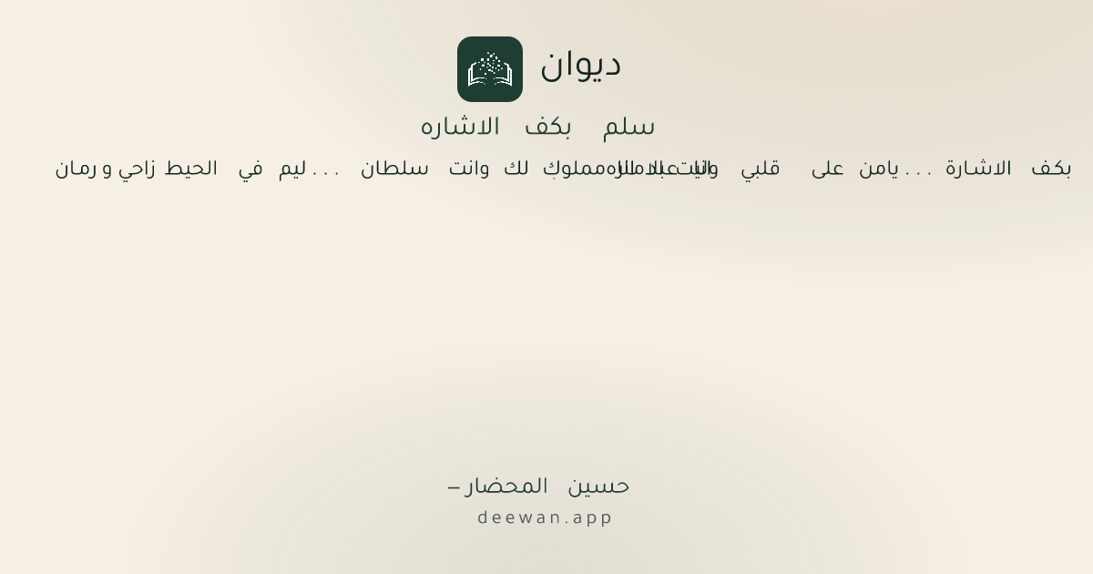 - 1سلم ولـو حتى بكـف الاشـارة . . . يامن على قلبي وليت الامـاره◆انا عبد انا مملوك لك وانت سلطان . . . ليم في الحيط زاحي و رمـان
