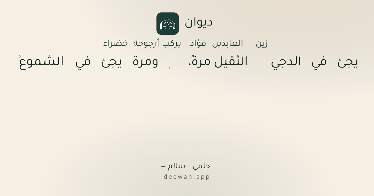 - 1يجئ في الدجي الثقيل مرةً،◆ومرة يجئ في الشموعْ