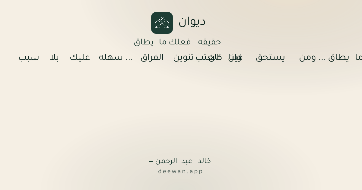 - 1حقيقه فعلك ما يطاق ... ومن يستحق فينا العتب◆وان كان تنوين الفراق ... سهله عليك بلا سبب