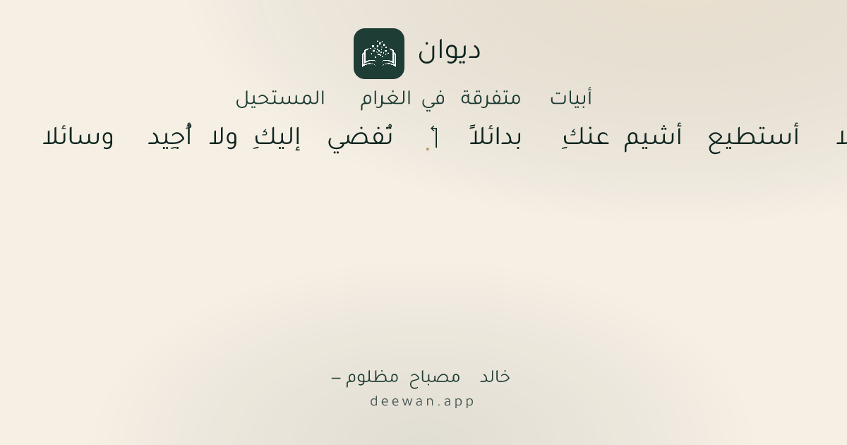 - 1لا أستطيع أشيم عنكِ بدائلاً◆ تُفضي إليكِ ولا أُجِيد وسائلا