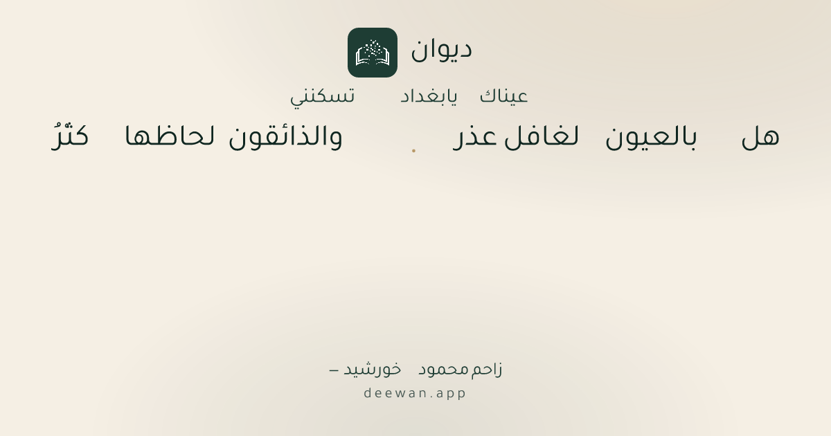 - 28بغداد انت النار في كبدي◆لم يلهنا عن ذكرها ذكر