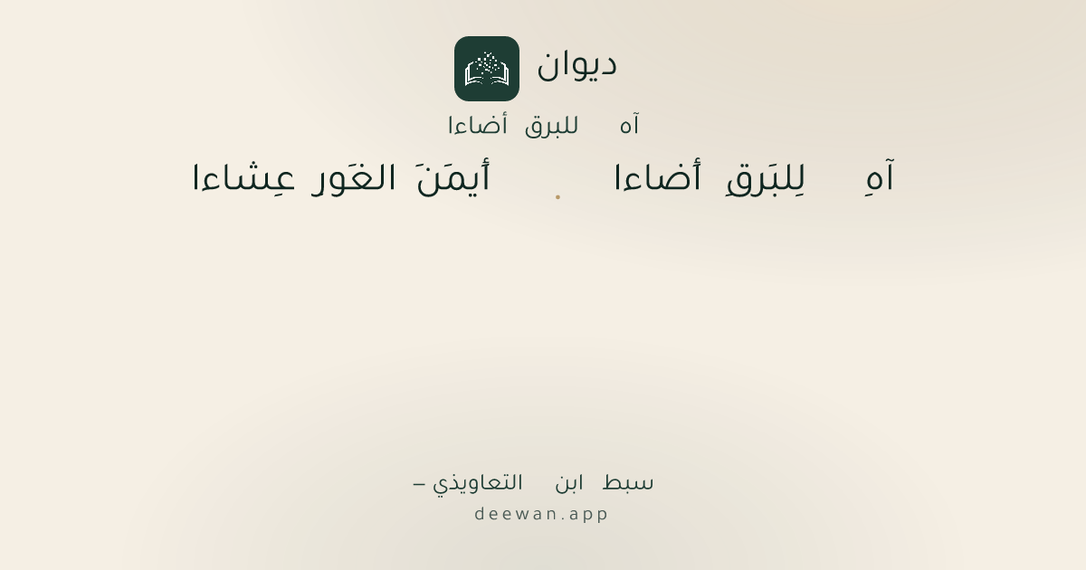 - 1آهِ لِلبَرقِ أَضاءا◆أَيمَنَ الغَورِ عِشاءا