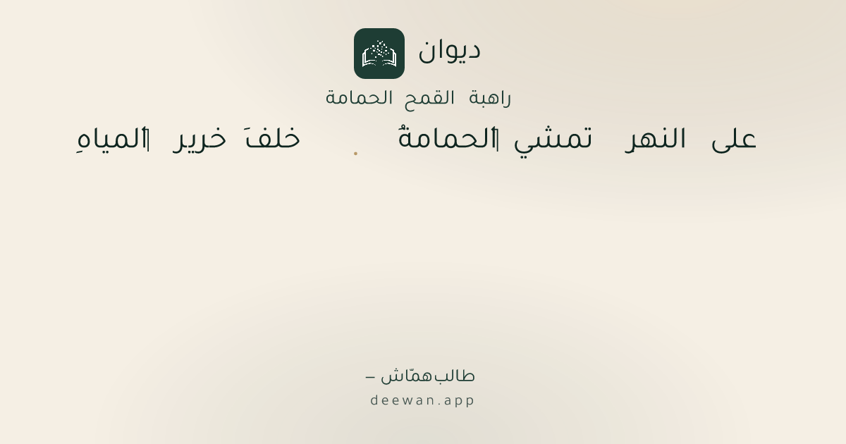 - 1على النهرِ تمشي الحمامةُ◆خلفَ خرير المياهِ