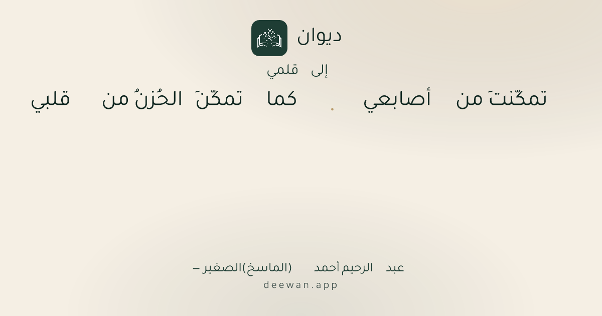 - 1تمكّنتَ من أصابعي◆كما تمكّنَ الحُزنُ من قلبي