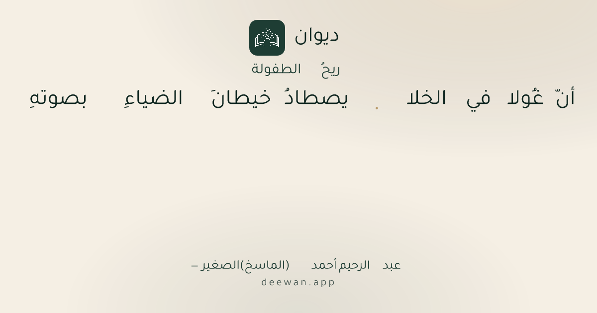 - 1أنّ غُولا في الخلا◆يصطادُ خيطانَ الضياءِ بصوتهِ