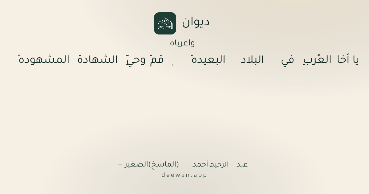 - 1يا أخا العُربِ في البلاد البعيدهْ◆قمْ وحيِّ الشهادة المشهودهْ