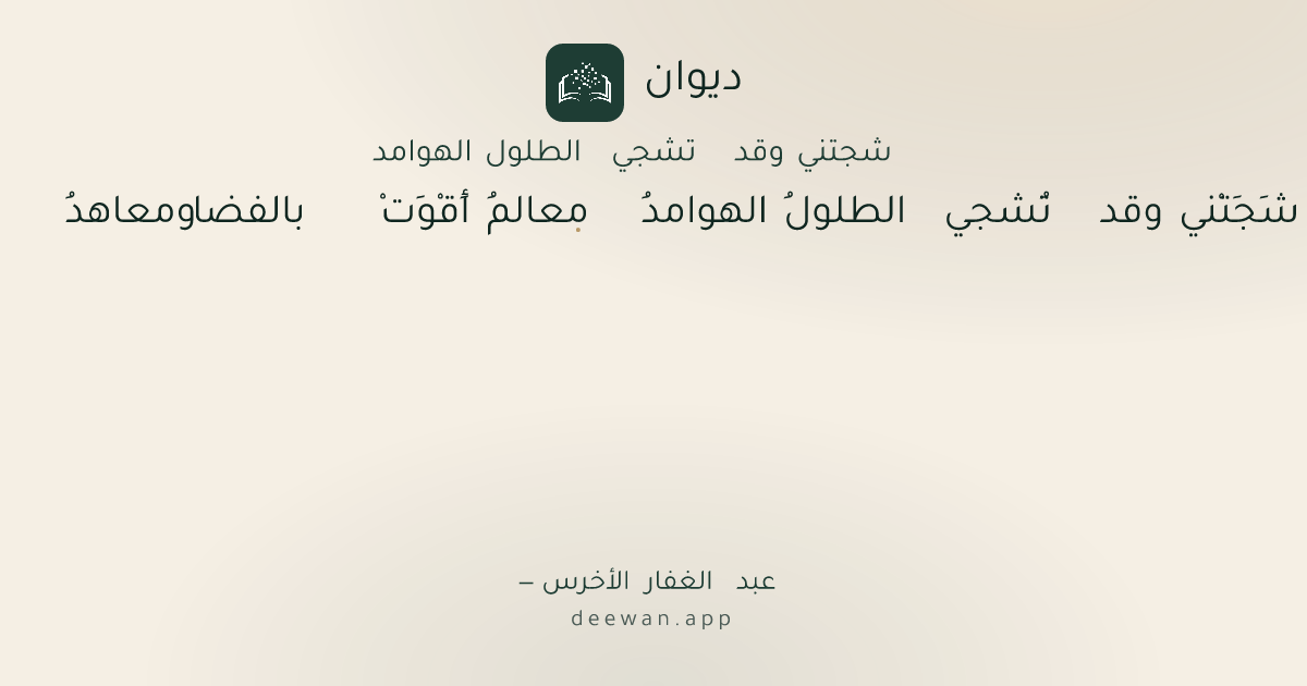 - 1شَجَتْني وقد تُشجي الطلولُ الهوامدُ◆معالمُ أَقْوَتْ بالفضا ومعاهدُ