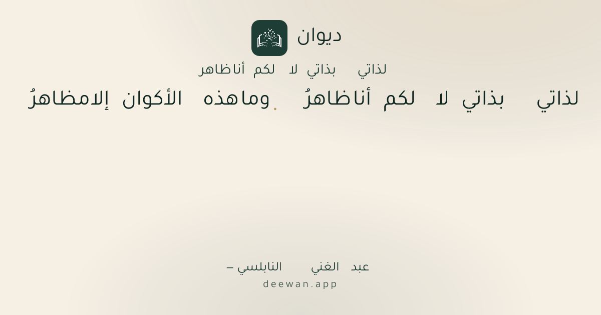 - 1لذاتي بذاتي لا لكم أنا ظاهرُ◆وما هذه الأكوان إلا مظاهرُ