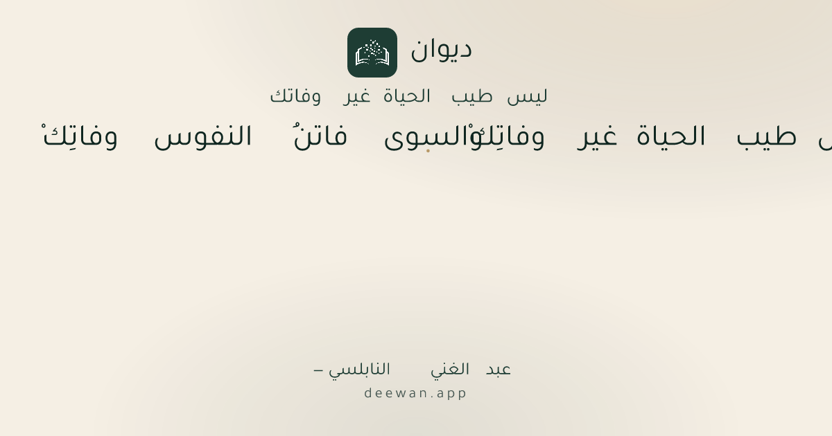 - 1ليس طيب الحياة غير وفاتِكْ◆والسوى فاتنُ النفوس وفاتِكْ