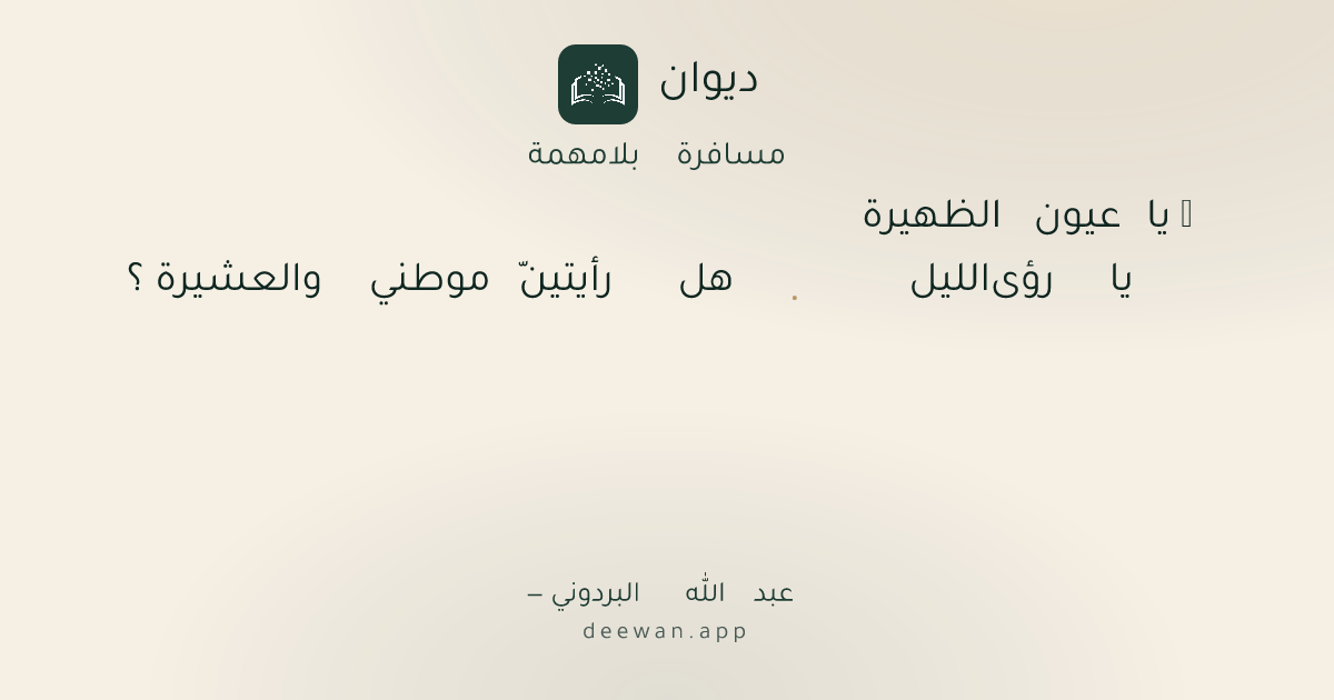 - 1يا رؤى الليل يا عيون الظهيرة◆هل رأيتينّ موطني والعشيرة ؟