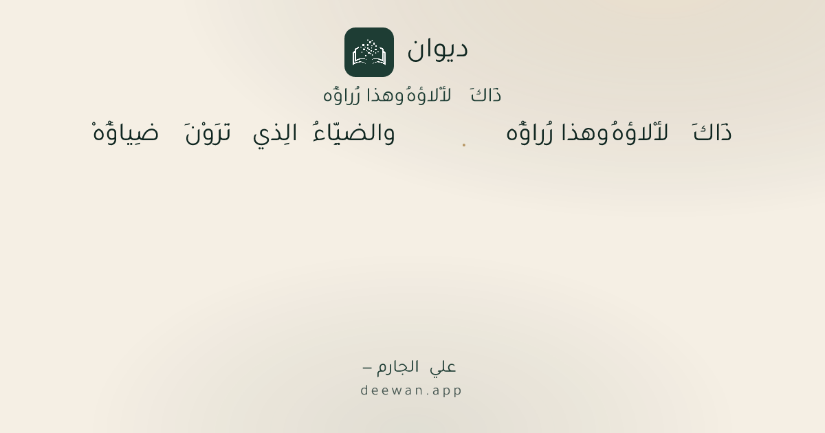 - 1ذَاكَ لأْلاؤهُ وهذا رُراؤُه◆والضيِّاءُ الِذي تَرَوْنَ ضِياؤُهْ