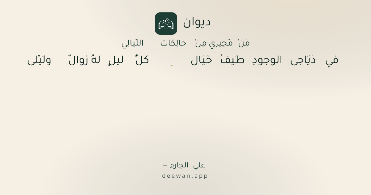 - 1في دَيَاجى الوجودِ طَيفُ خَيَال◆كلُّ ليلٍ لهُ زَوالٌ ولَيْلى
