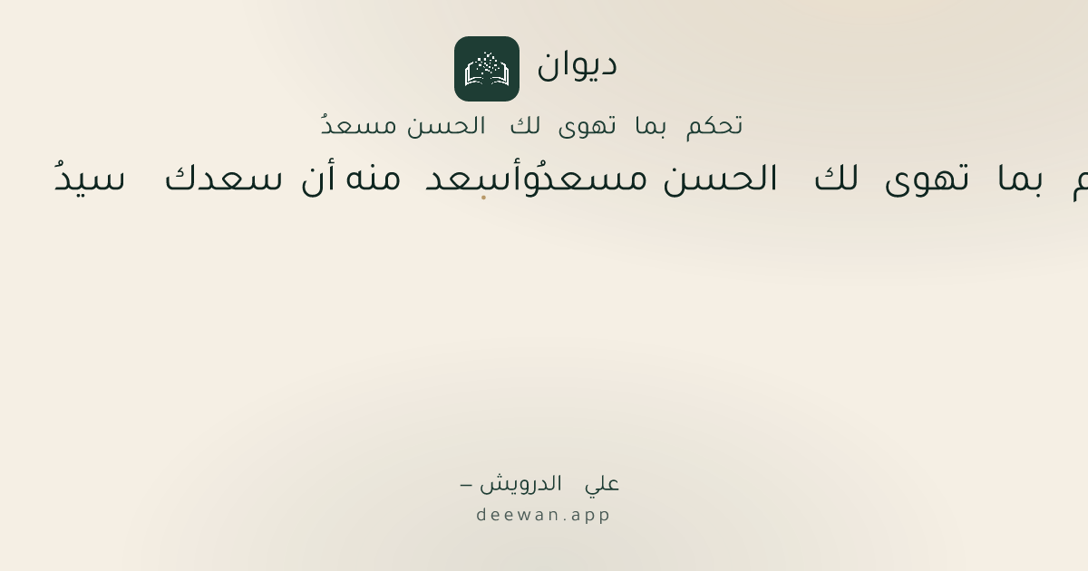 - 1تحكم بما تهوى لك الحسن مسعدُ◆وأسعد منه أن سعدك سيدُ