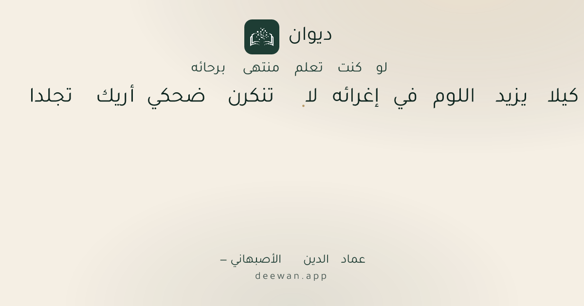 - 1كيلا يزيد اللوم في إغرائه◆لا تنكرن ضحكي أريك تجلدا